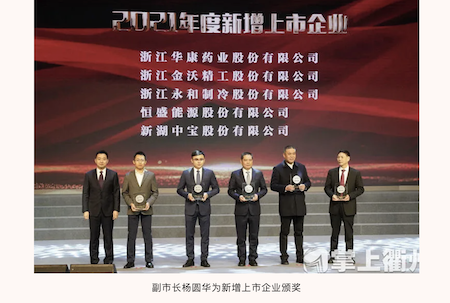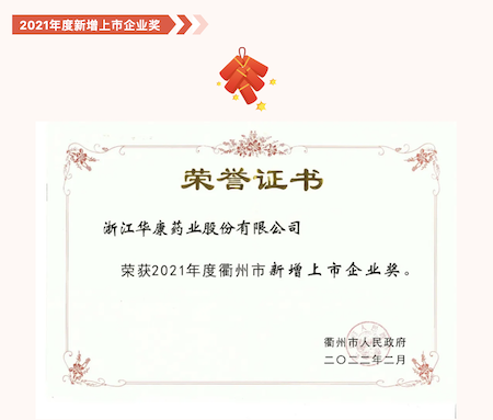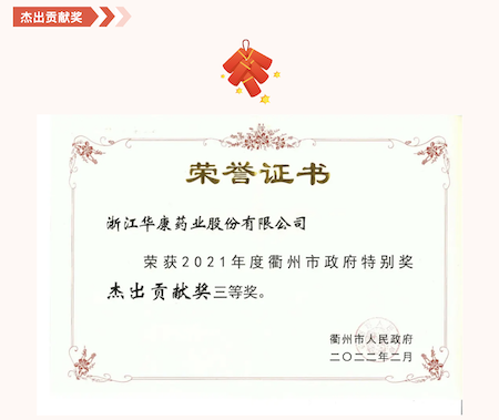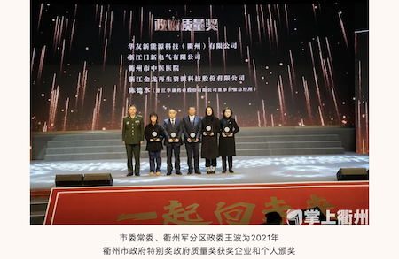 在本次大会上,华康股份被授予2021年度衢州市新增上市企业奖、2021年度衢州市政府特别奖杰出贡献奖三等奖,华康股份董事长兼总经理陈德水同志被授予2021年度衢州市政府特别奖政府质量奖(个人)。