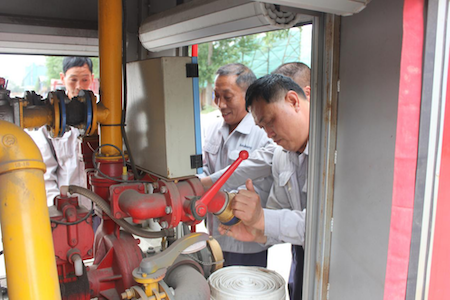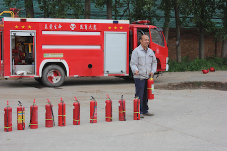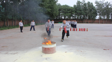 全体队员讯速集结,安环部经理邓建军分别对公司现有消防器材进行了培训。公司消防器材有35kg手推式干粉灭火器、4kg干粉灭火器、二氧化碳灭火器、消火栓、5T消防车一辆。邓经理针对如何正确使用消防器材进行了逐一讲解,重点对如何采取正确的灭火方法和选用合适的灭火器进行进一步阐述和示范,参演消防队员深受教育及警示,培训后进行了实战演练。