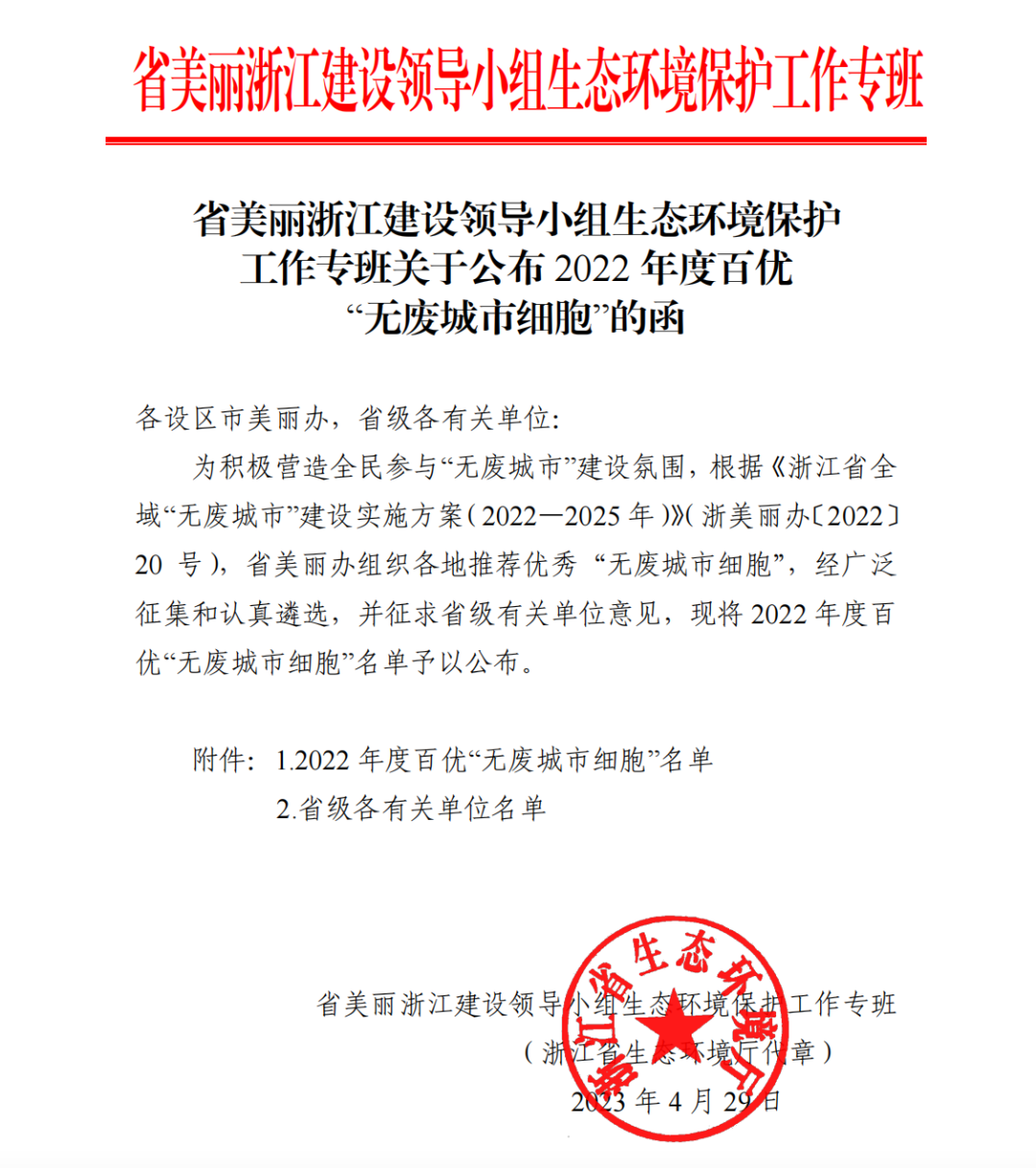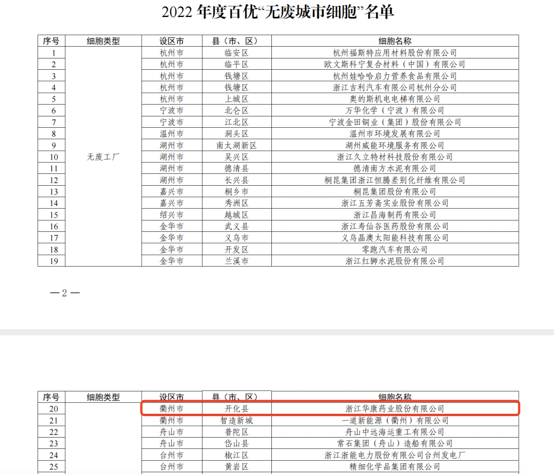 经过地方推荐、相关部门审核层层遴选,华康股份因在固体废物减量化、资源化和无害化等方面绩效显著,成功入选百优“无废城市细胞”名单。